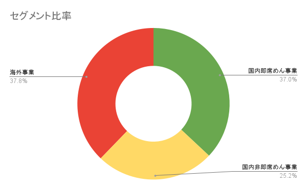 はじめに事業内容からです。日清は主に国内即席めん事業国内非即席めん事業海外事業の3つのセグメントから構成されています。