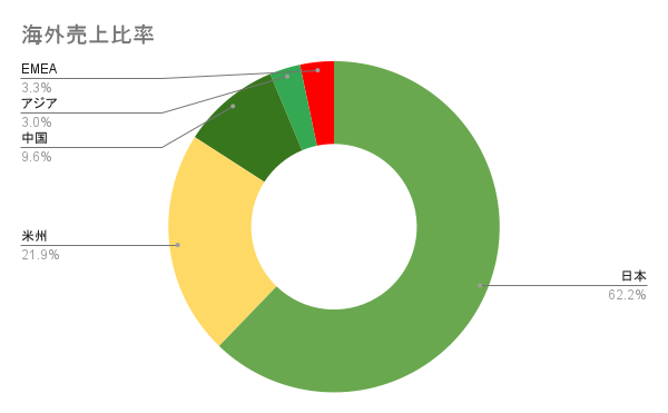 地域別では、日本に次いで米州(米国、ブラジルなど)が多く、米国で2022年度に大幅な価格改定を行ったことで売上比率を向上させたと考えられます。他には中国やアジア、EMEA(欧州、中東、アフリカ)と全世界に製品を届けています。