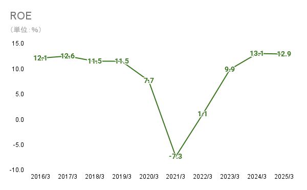 ROEは、営業利益同様にコロナ後に1段上に推移しているようにみえます。コロナ後にクルーズ事業やディズニーランド・シー内の修繕、ファンタジースプリングスの増設などの積極的な投資により財務レバレッジは大きくなっています。ROEが利益率と同様の推移をしているため、総資産回転率自体はコロナ前よりも下がっていると考察できます。しかし、平時のROEは株主資本コストを上回っており経営全体の効率性は高いと考えられます。