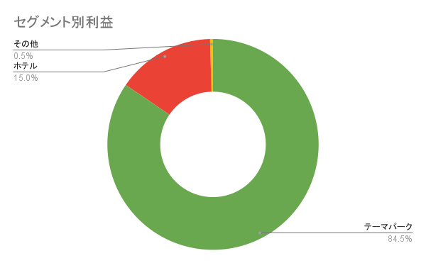売上・利益ともにテーマパーク事業が80%近くを占めています。ホテルやモノレール事業はすべてディズニーランド・シーを起点として行われる事業であり、セグメントで分かれつつもセグメント間の売上の相関性は非常に高くなっています。