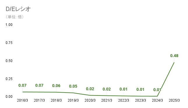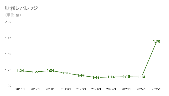 財務レバレッジは2025年3月期に大きく上昇しています。それ以前は有利子負債の返済と内部留保の積み増しにより財務レバレッジを押し下げています。しかし、きずなHDの統合により大幅なレバレッジをかけて経営をする方針に移ったと考えられます。レバレッジ倍率だけで見ると、現状では財務健全性はまだ十分であり今後もM&Aを続けられる余力があると考えられます。